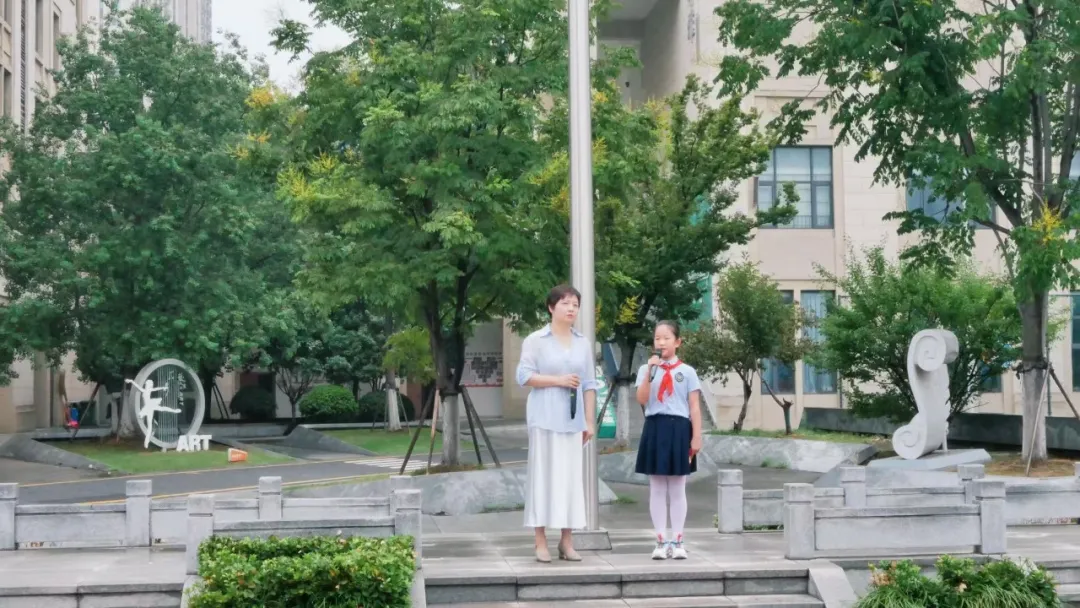 典禮現(xiàn)場,主持人首先介紹了本次開學典禮的旗手——他們是2025年安徽省中小學生手球聯(lián)賽小學男子乙組亞軍獲得者代表,以及2025全國青少年信息素養(yǎng)大賽總決賽一等獎獲得者。合肥市永紅路小學黨支部副書記、副校長邢媛媛與榮獲“2025年安徽省中小學生手球聯(lián)賽體育道德風尚獎”及“最佳投手”稱號的李弘毅同學并肩執(zhí)旗,共升國旗。在全體師生的注目中,在激昂的國歌聲中,愛國情懷與榜樣力量在校園中傳遞。