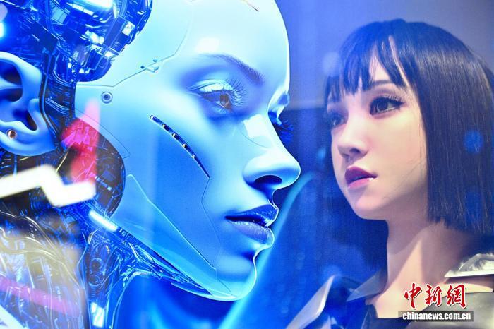 圖為交互型仿生人形機(jī)器人“小柒”(右)亮相2024世界制造業(yè)大會(huì)。(資料圖)中新社記者 韓蘇原 攝