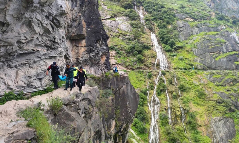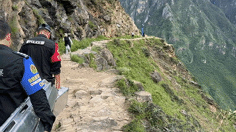 近日,云南省迪慶州香格里拉市公安局虎跳峽派出所接110指揮中心指令,一名游客在虎跳峽高路徒步路線瀑布附近被落石擊中,急需救援,派出所迅速啟動應(yīng)急機制,民警楊文杰、金思濤及輔警宋政乾、和云鋒立即攜裝備出發(fā),于當日14時50分趕到事發(fā)現(xiàn)場。