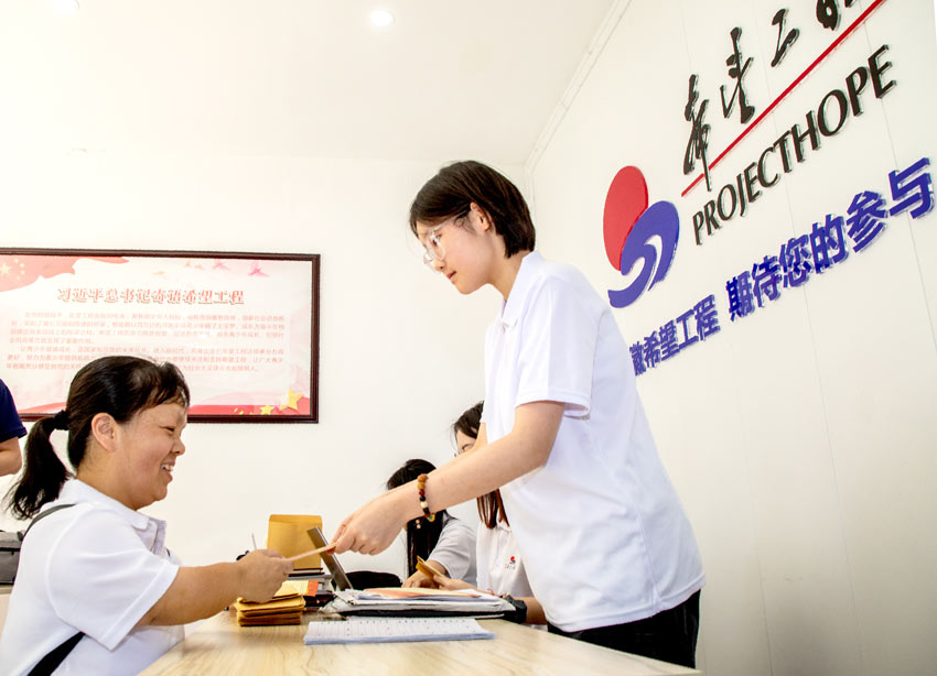中國好人彭霞向希望工程捐款。曾菁 攝