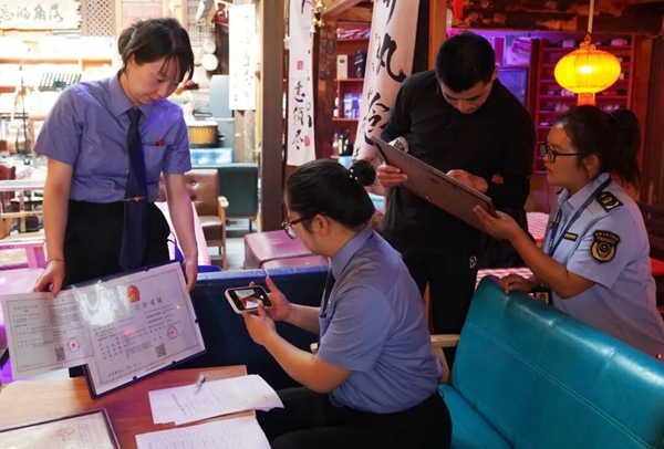 “這家演藝吧沒有營業(yè)性演出許可證”“這家酒吧沒有貼未成年人禁止入內標識牌”……走訪現(xiàn)場,聯(lián)合調查組逐項記錄問題,當場向經營主體提出整改意見,并督促相關職能部門限期落實。