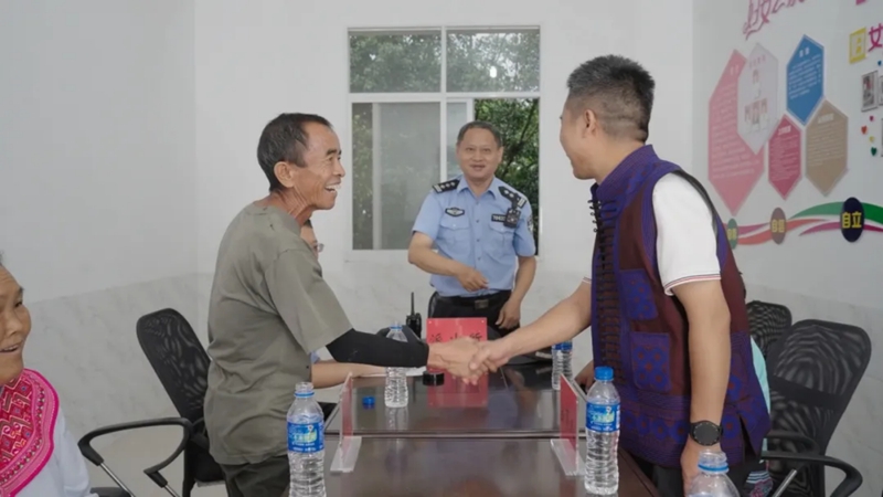 轄區(qū)某村兩兄弟分家,哥倆因宅基地多次發(fā)生爭吵。2014年以來,村委會(huì)先后多次調(diào)解都沒能成功。派出所民警了解情況后,認(rèn)真傾聽兩家人訴求,一個(gè)多月里,十多次的上門勸解終于捂暖了兩家人的心。民警趁熱打鐵,聯(lián)系靈泉辦事處、靈泉司法所、三臺(tái)鋪村委會(huì)和田房村民小組入村調(diào)解,并讓兩家共同的長輩參與說理。這種“法為據(jù)、理為基、情為橋”的方式,讓兩家人達(dá)成和解,同胞親兄弟倆握手言和,一起纏繞雙方多年的矛盾終得化解。