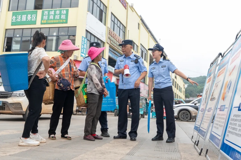 集市是日常生活的縮影,也是普法宣傳的絕佳課堂。靈泉派出所抓住趕集日人流量大、群眾集中的特點(diǎn),把法律知識(shí)“打包”上門,以“漢語+苗語”的形式,深入淺出地為群眾詳細(xì)講解法律法規(guī)在日常生活中的應(yīng)用。