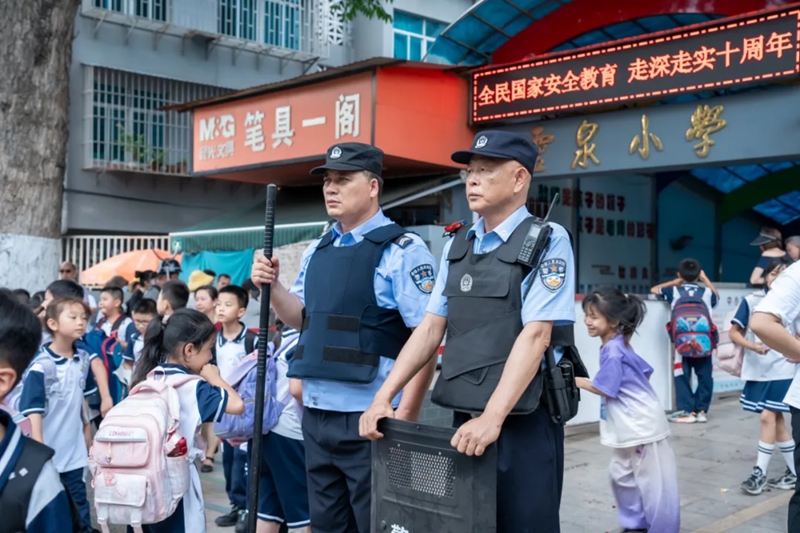 “警”心守護(hù)不止于此,為進(jìn)一步筑牢校園安全防線,靈泉派出所協(xié)調(diào)街道辦事處組織學(xué)校安保及群防群治力量參與值守護(hù)學(xué)崗,發(fā)動(dòng)老師、家長、保安和鄰校商鋪力量組建了435人的“校警家社”聯(lián)動(dòng)隊(duì),警力和保安駐守校門,家長志愿者、社區(qū)志愿者合力引導(dǎo),高峰時(shí)段合力護(hù)航學(xué)生上下學(xué)“平安路”。