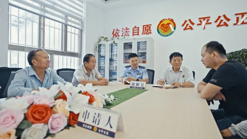 2024年年初,轄區(qū)一對親兄妹因建房滴水糾紛,一天之內(nèi)三次報警。面對家庭矛盾,楊宗霖沒有急于處理表面問題,而是帶領(lǐng)調(diào)解小組深入挖掘“心結(jié)”。他請來雙方都尊敬的村中長者做中間人,由調(diào)解室收集證據(jù)材料,從法理講起,從人情入手,從倫理歸置,通過六小時連夜調(diào)解,兄妹最終冰釋前嫌,一紙調(diào)解協(xié)議化解了多年恩怨。